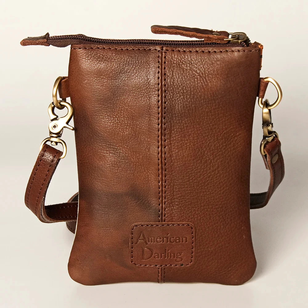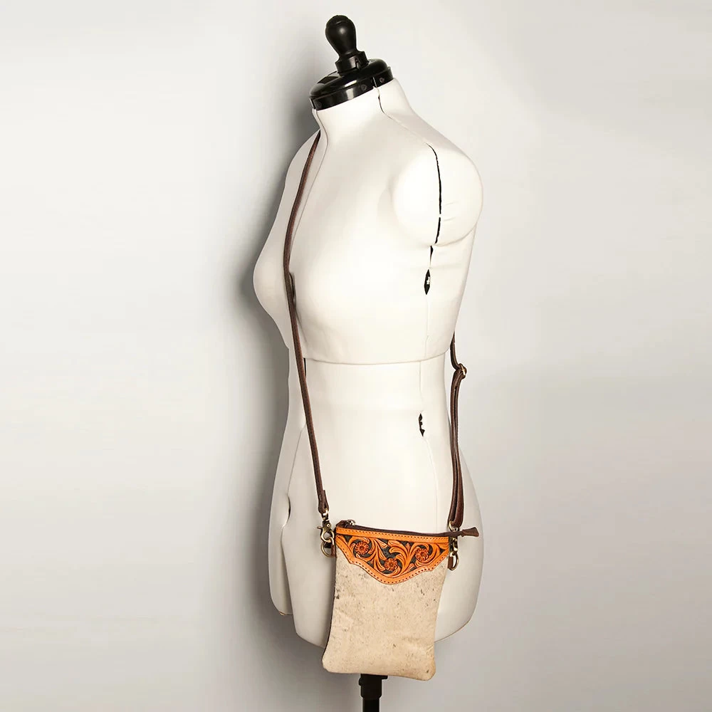 This is a beautiful little purse! The soft hair on cowhide with the tooled leather is a great combination!