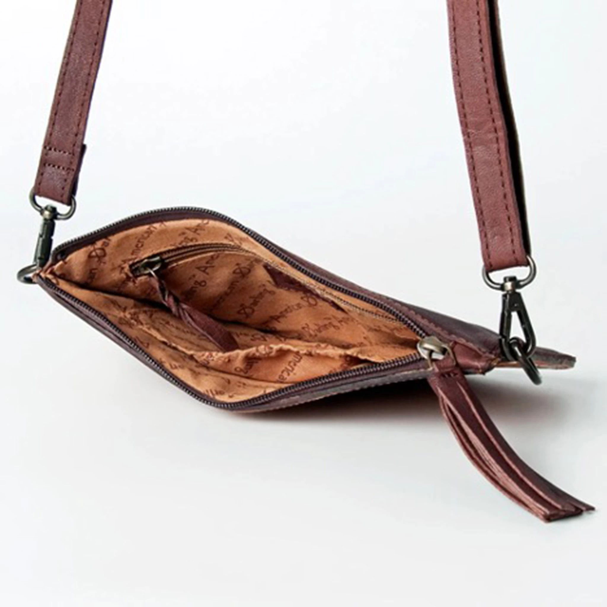 This large crossbody is made with an enticing combination of hand-tooled vegetable tanned cowhide leather, this bag delivers an amazing fashion statement with hand buck stitch and an adjustable and detachable long shoulder strap.
