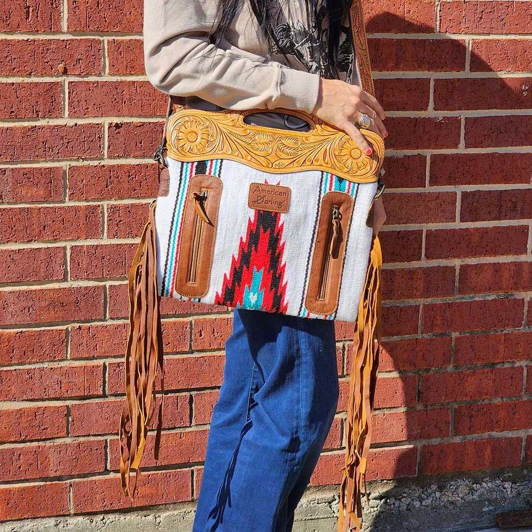 This cute White Aztec crossbody has so much style and flair. They pops of color in this bag are just so beautiful.Â