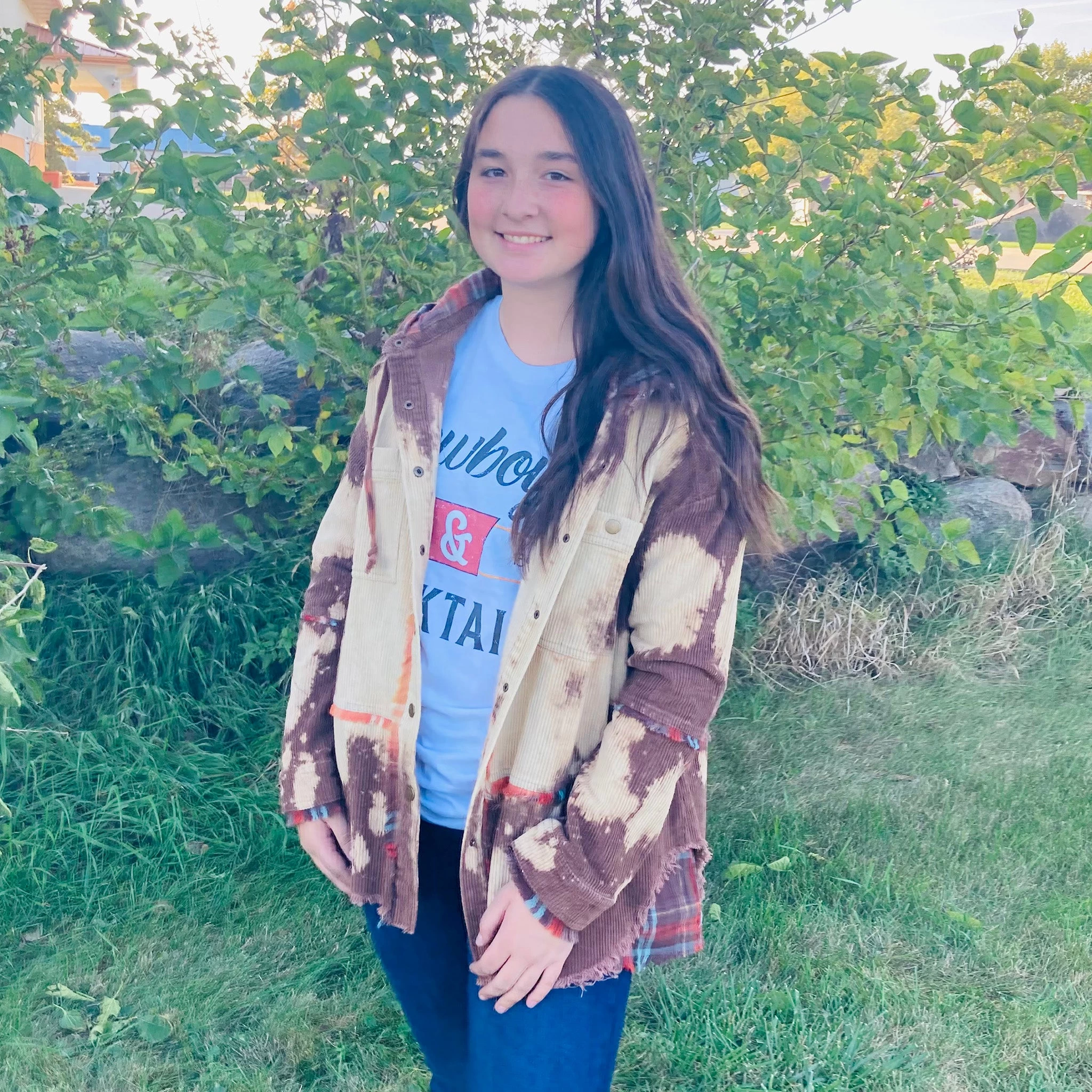 Look at this bleach corduroy shacket. This is a game changer. Look at the plaid throughout this shacket giving you a wide variety of colors that you can wear with it!Â