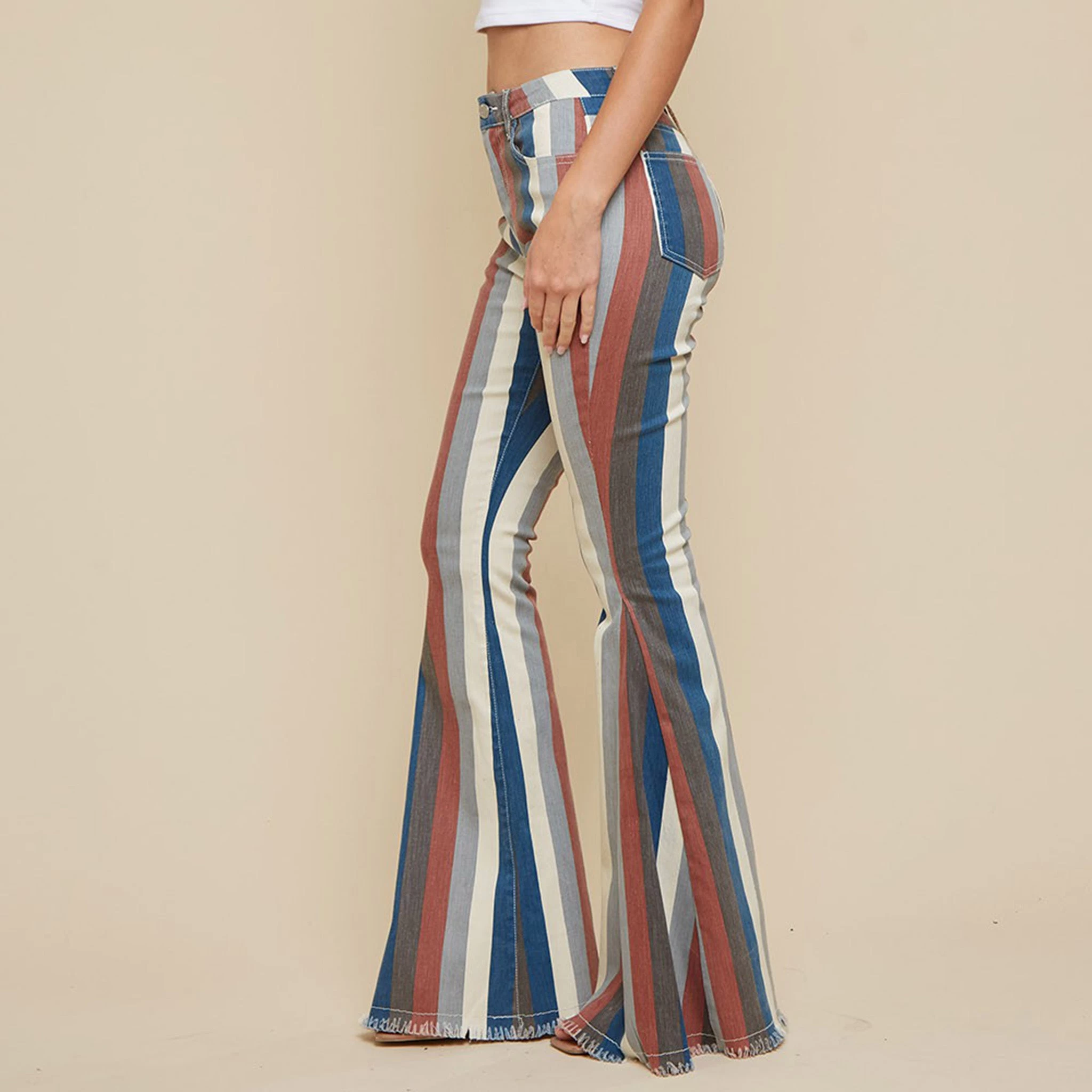 Who doesn’t love a great pair of jeans. You get color and flare with these high waisted bell bottom jeans. The bottom of the jean has fringe detail adding to the whole look.