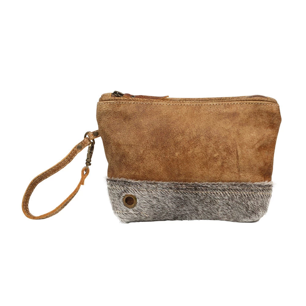 Clutches are great for small items and big events! This clutch has a wrist strap and zipper on the top! The grey hide is giving us true western vibes!Â