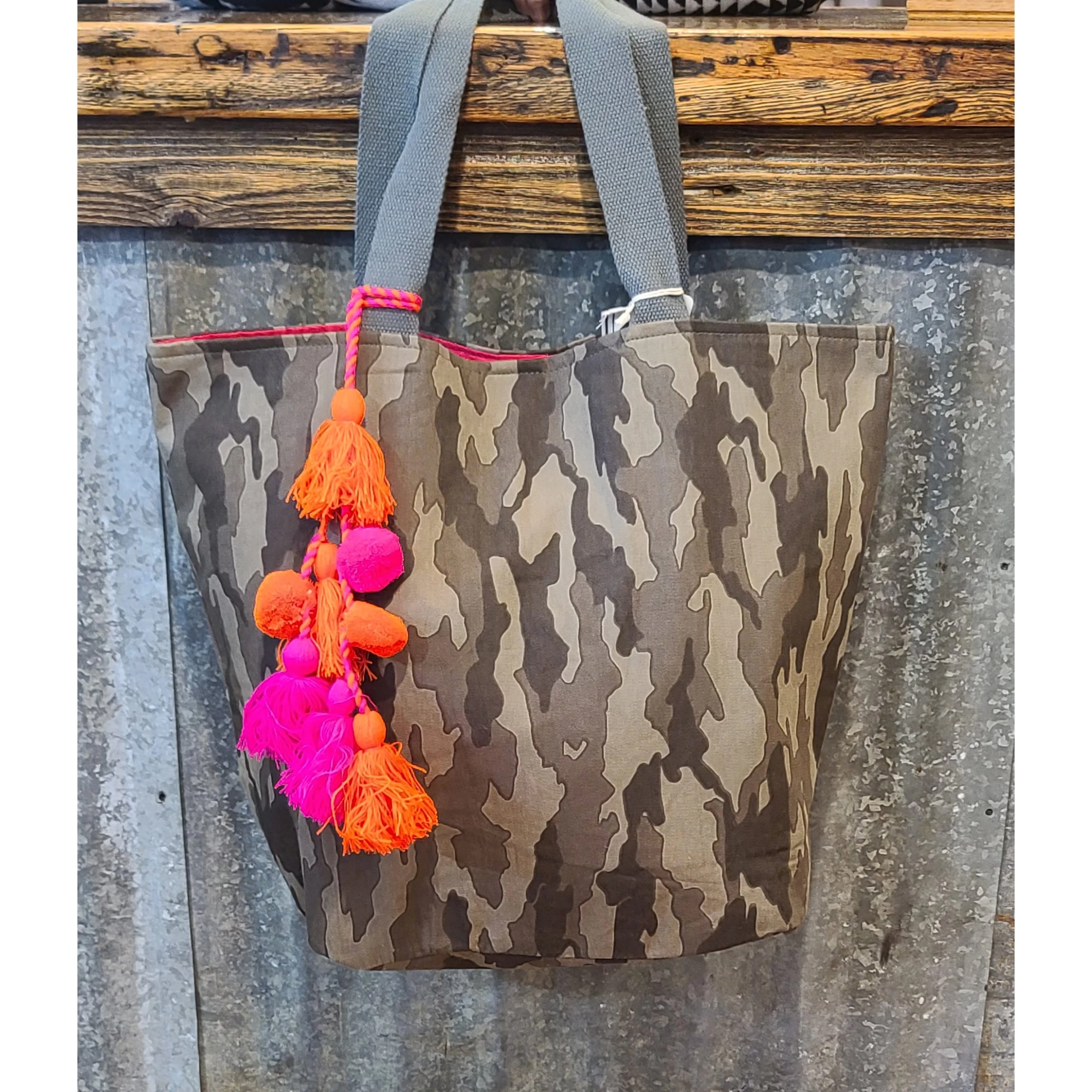 How cute is this camo tote? We just love the added pop of color from the fun tassel. This tote can be used for so many things, from weekend trips to lake days… you will be able to carry all the essentials!Â