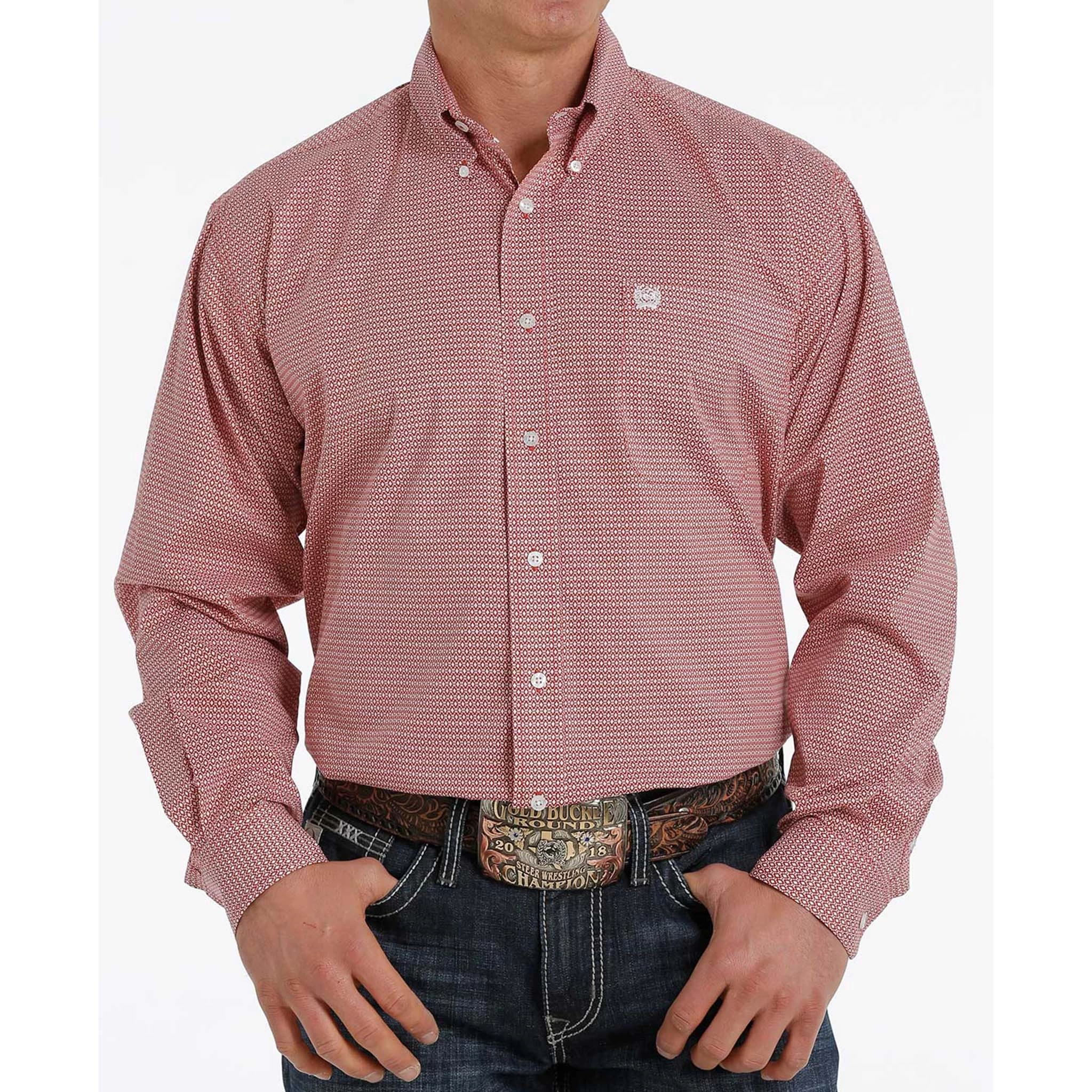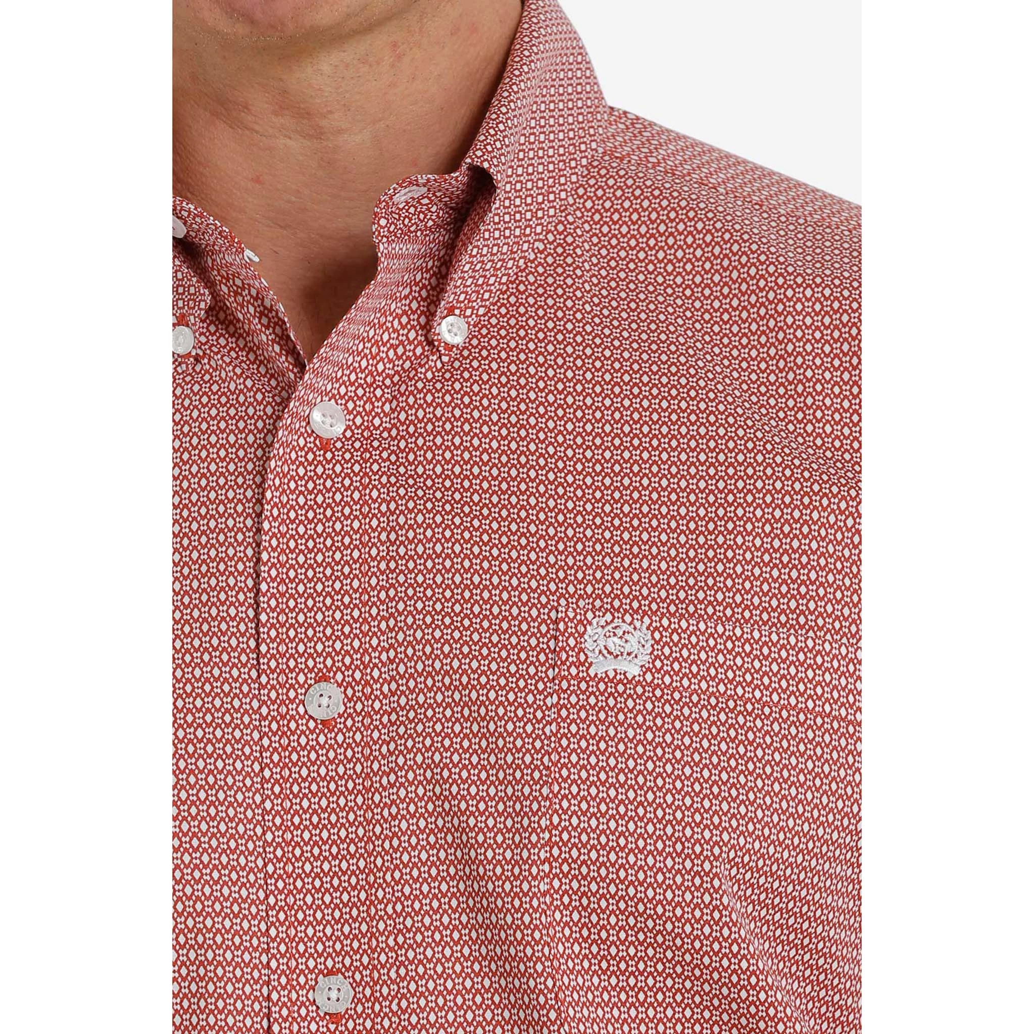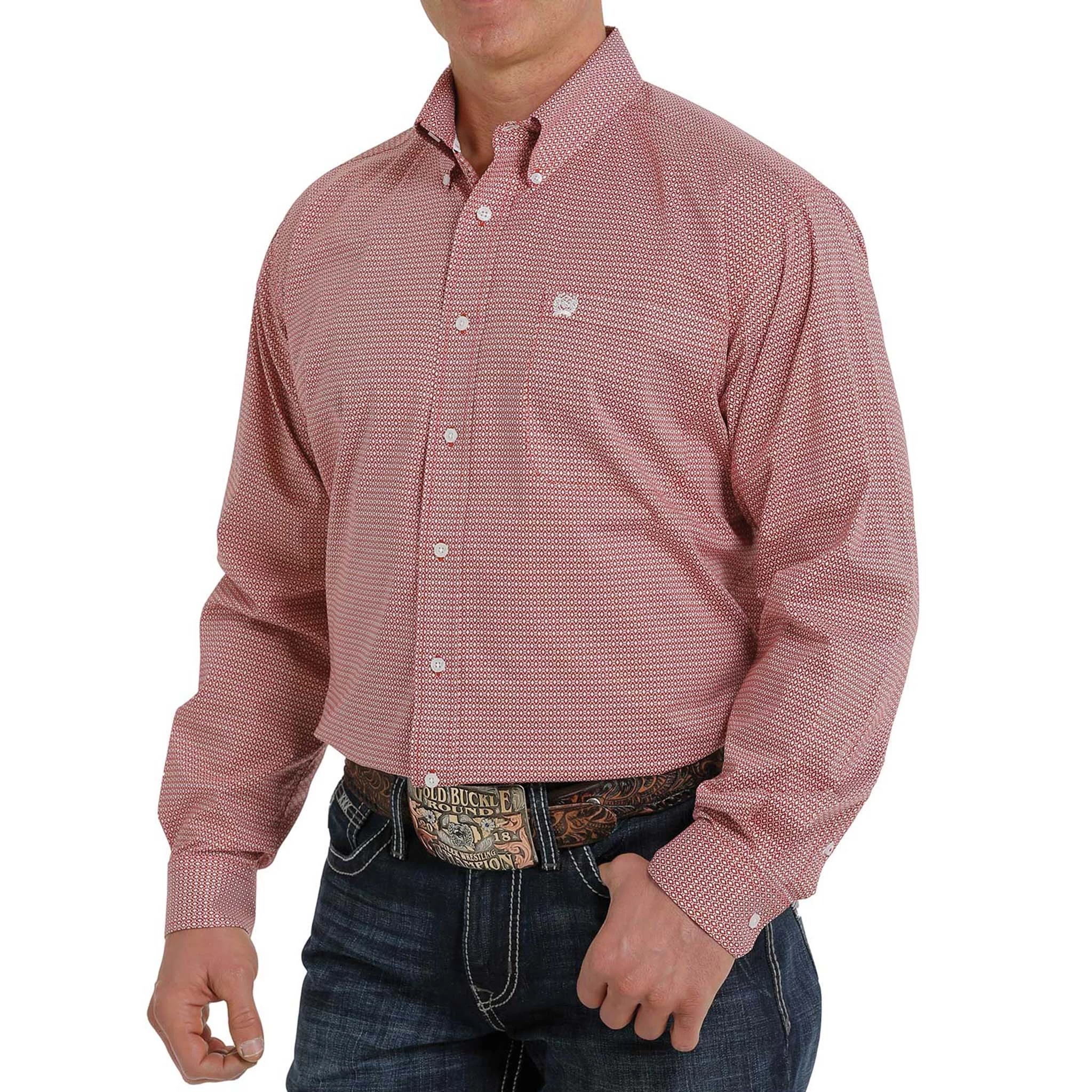 Look your best in this coral color print long sleeve by Cinch. Perfect for a day at the office or in the arena.Â