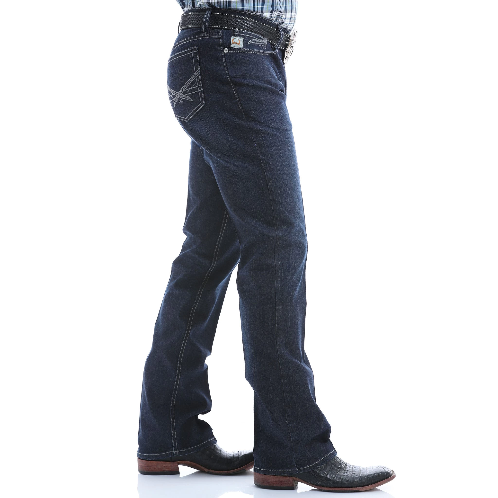This pair of Men’s Cinch Jeans are a dark wash style. They fit with a mid-rise waist, a slim fit, and a straight leg. The Cinch ArenaFlex technology provides mobility and comfort.Â