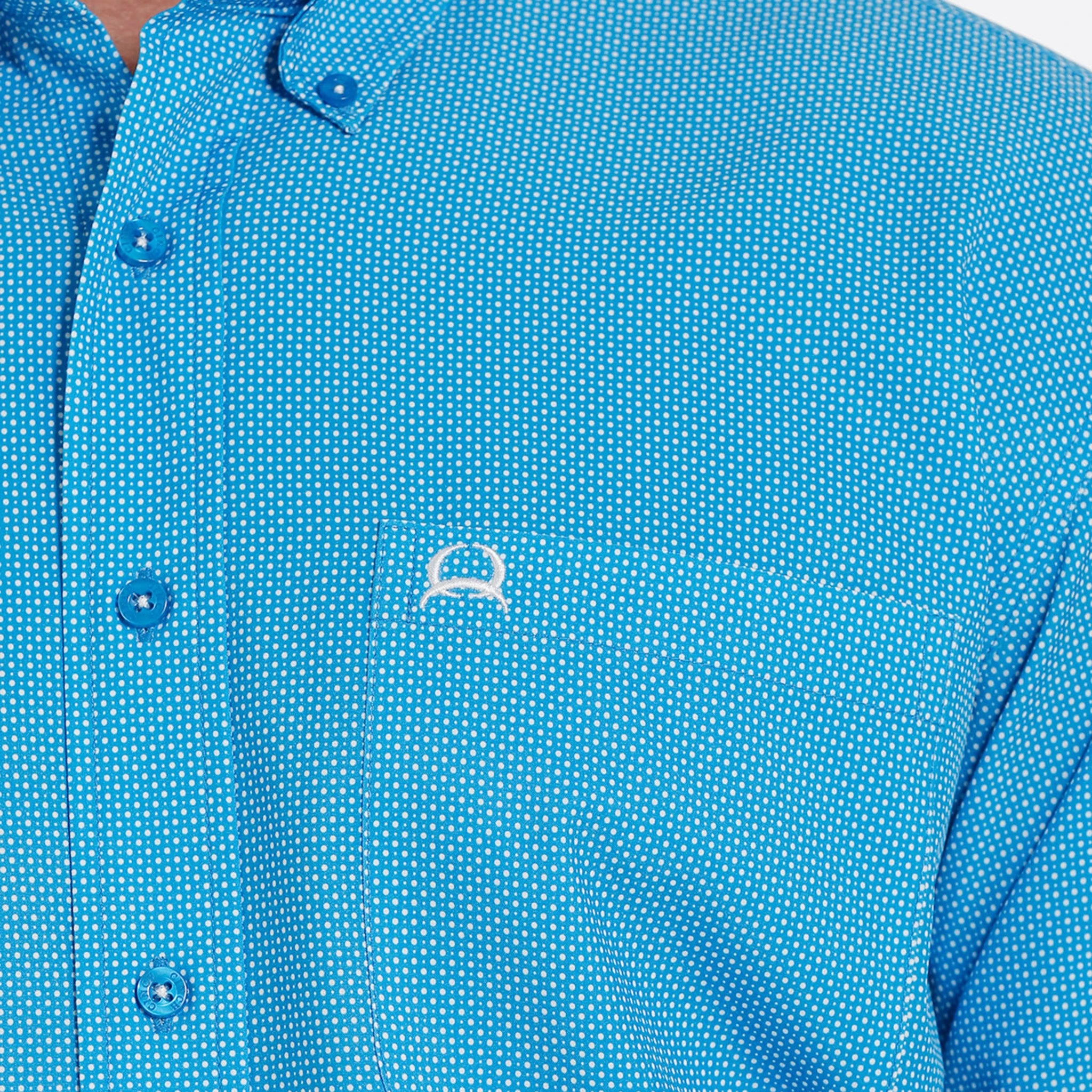 No matter the season, this handsome blue printed Arenaflex creates a crisp, versatile look that’s suitable for the office or a weekend sports event. Lightweight poly-spandex construction promises comfort on the go, with details including an open left front pocket, embroidered Cinch logo and blue buttons.