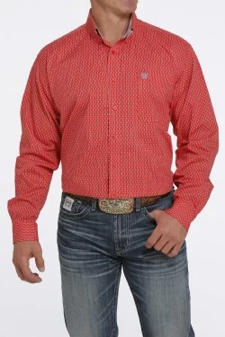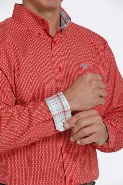 Made up in comfortable cotton-spandex plain weave, this red geometric printed button down is one you’ll reach for whenever you need a bold look for the day.Â
