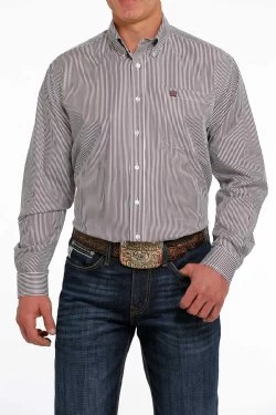 Versatile and easy to wear, the poly/Tencel/cotton twill weave should be the cornerstone of your next stylish outfit. Engineered with a trendy purple micro stripe print, this shirt features an open left front pocket with embroidered logo and white square buttons.