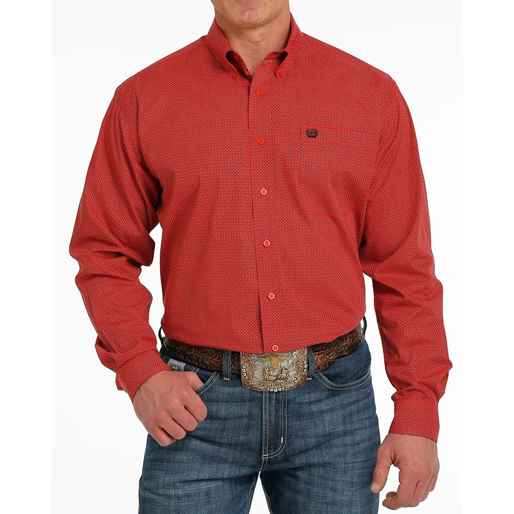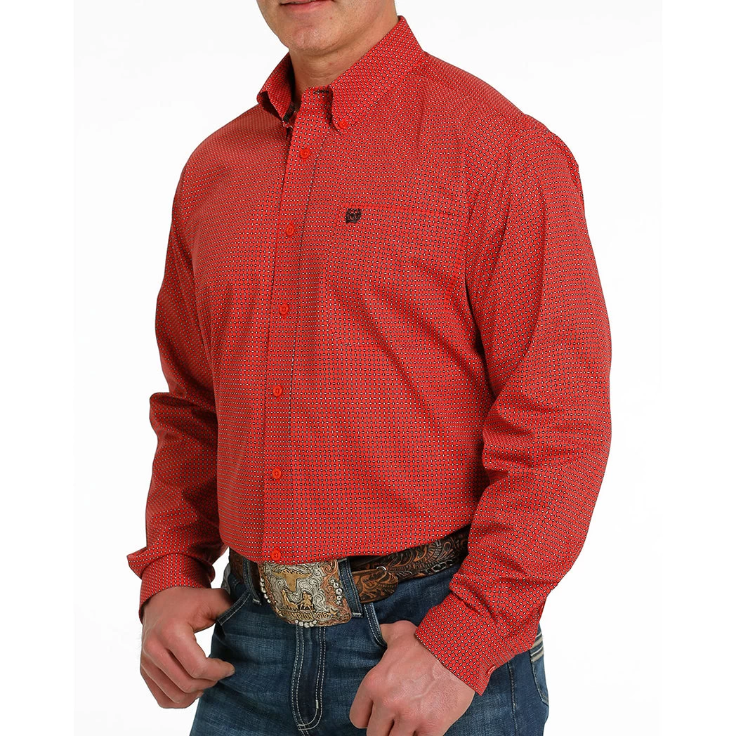 This bright and good looking red cinch shirt is sure to have you looking great at the rodeo, the office or anywhere in-between.Â