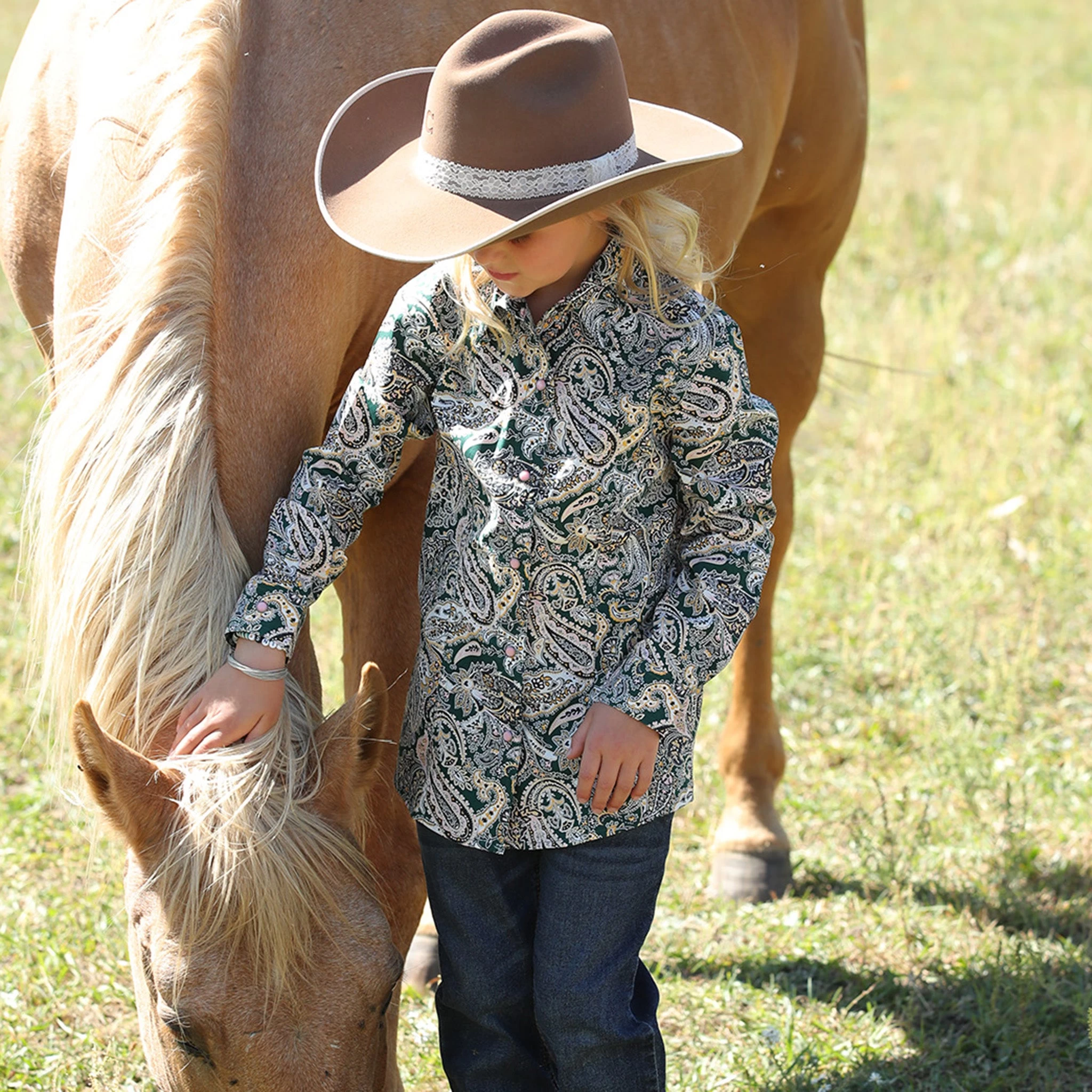 The perfect competition shirt for your little cowgirl! This green paisley Cruel Girl shirt is absolutely beautiful and will look great in the arena.Â