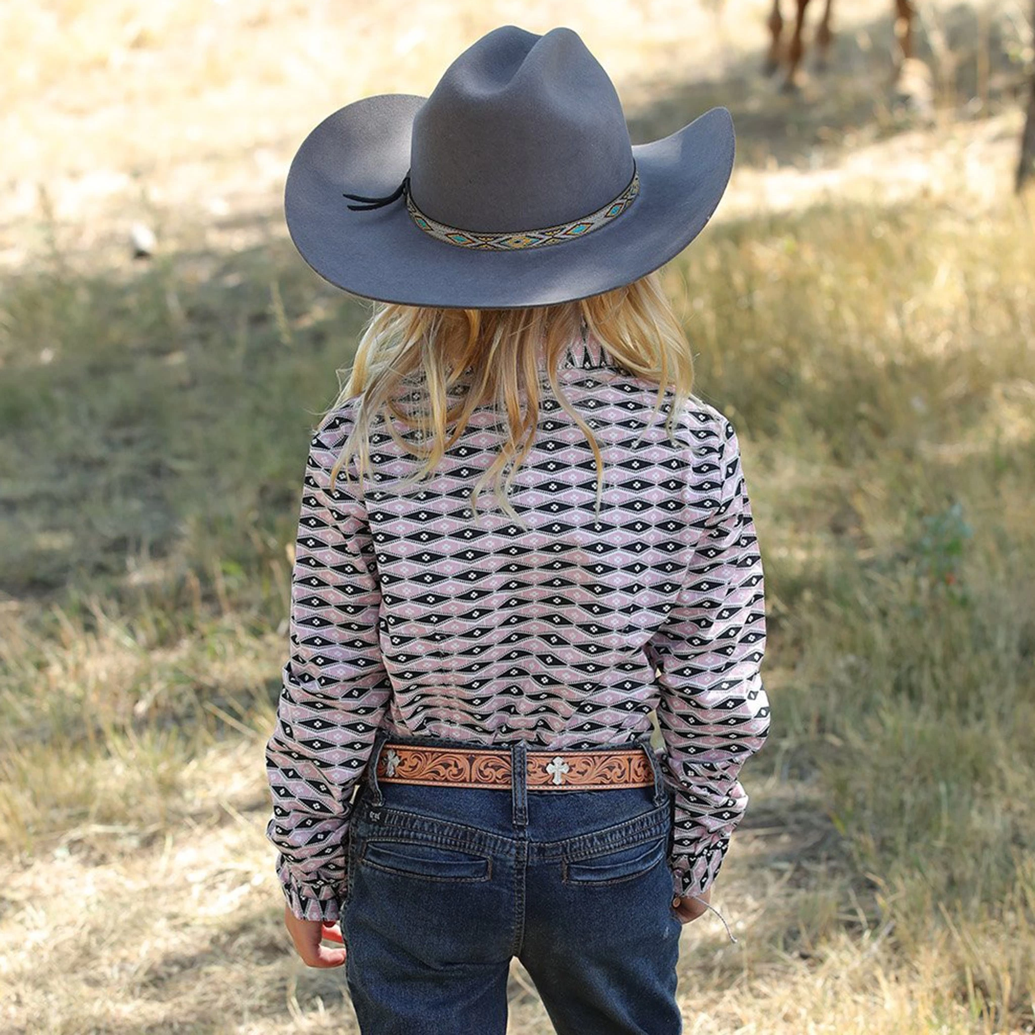 Dress her for the rodeo with this feminine pink Cruel Girl Western shirt that’s destined to become her favorite outfit-maker. Design details include a spread collar, Western yokes, double front pockets and pink rhinestone snaps. Pair with blue jeans, a belt and boots for the complete look.