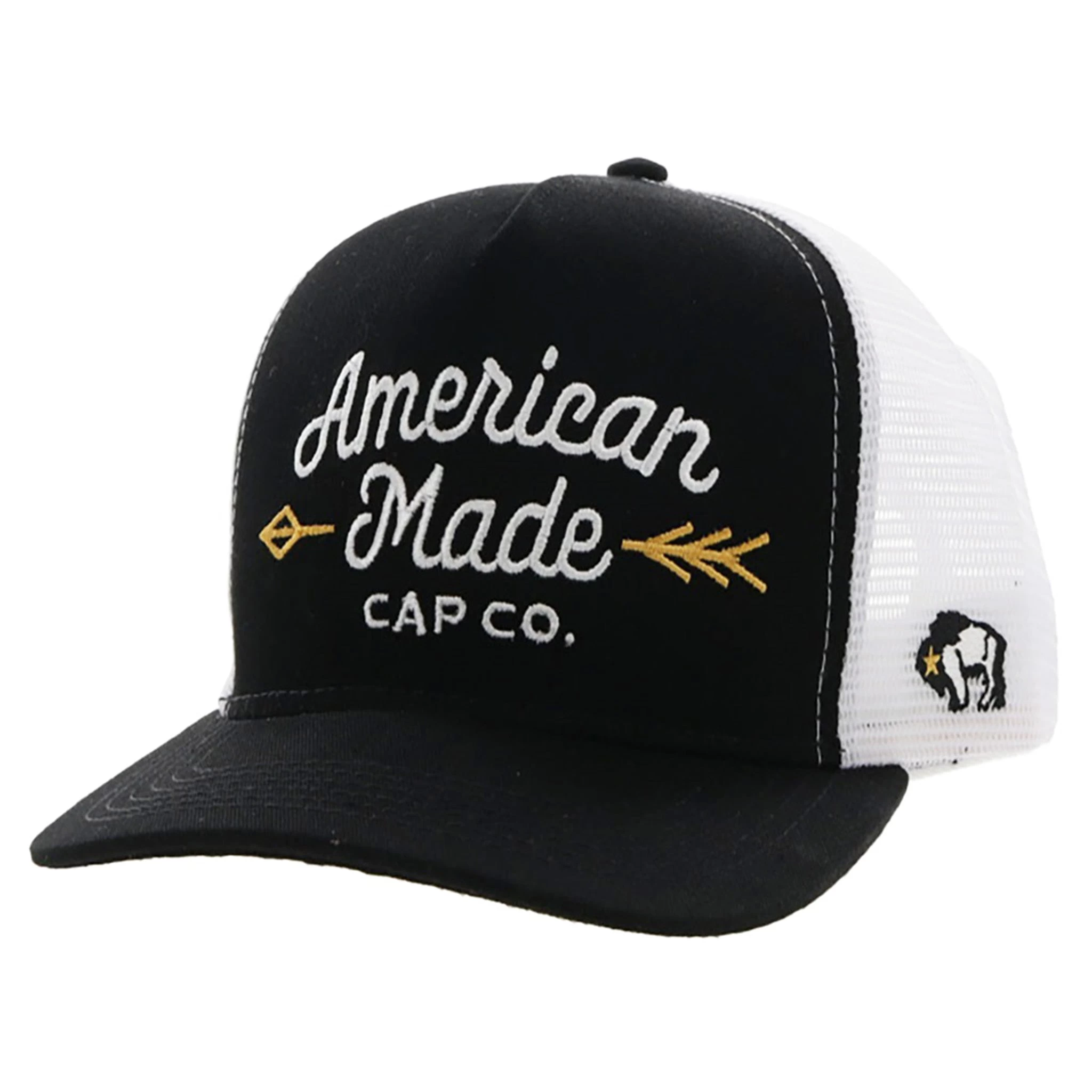 Look at this black and white American Made ball cap. Not only does the gold make the hat stand out it adds a pop of color.Â