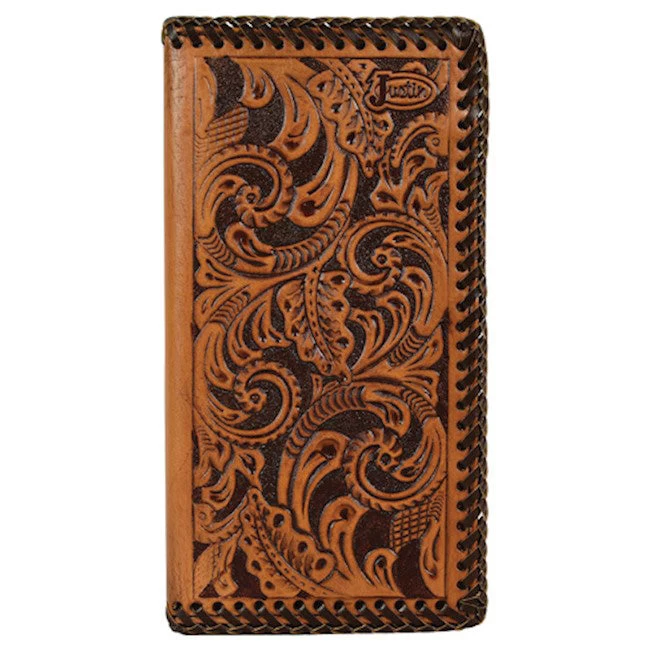 This wallet has beautiful tooling with a rawhide whipstitched edge. There are plenty of slots and pockets, this is perfect for a man or woman.