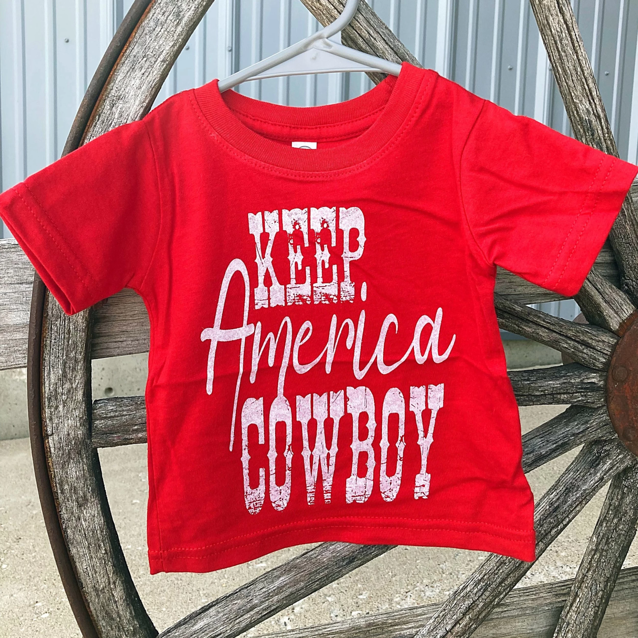 This “Keep America Cowboy” kid tee screams the truth and is the perfect little tee for all of our little cowboys out there!Â