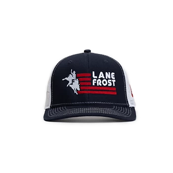 Lucky never had anything to do with the success that Lane Frost had. Show your support for the Legend with this great Red, White, and Blue Lane Frost Brand Cap.