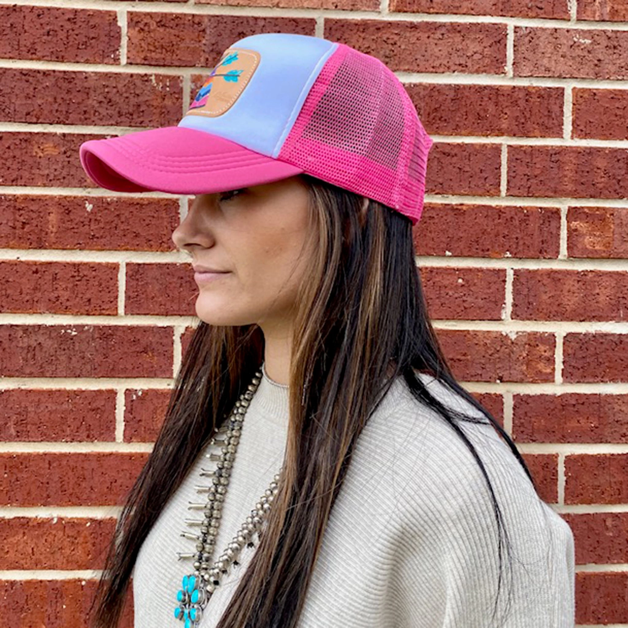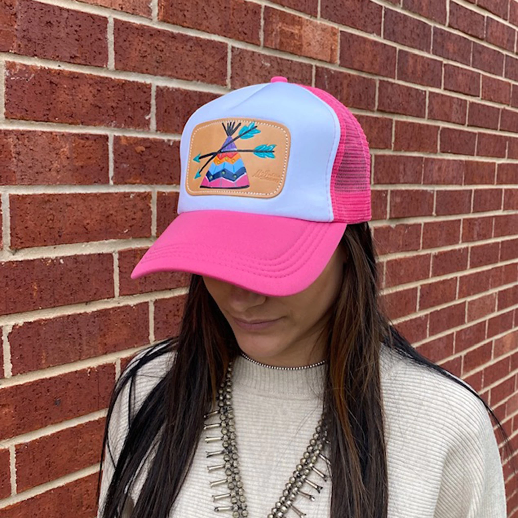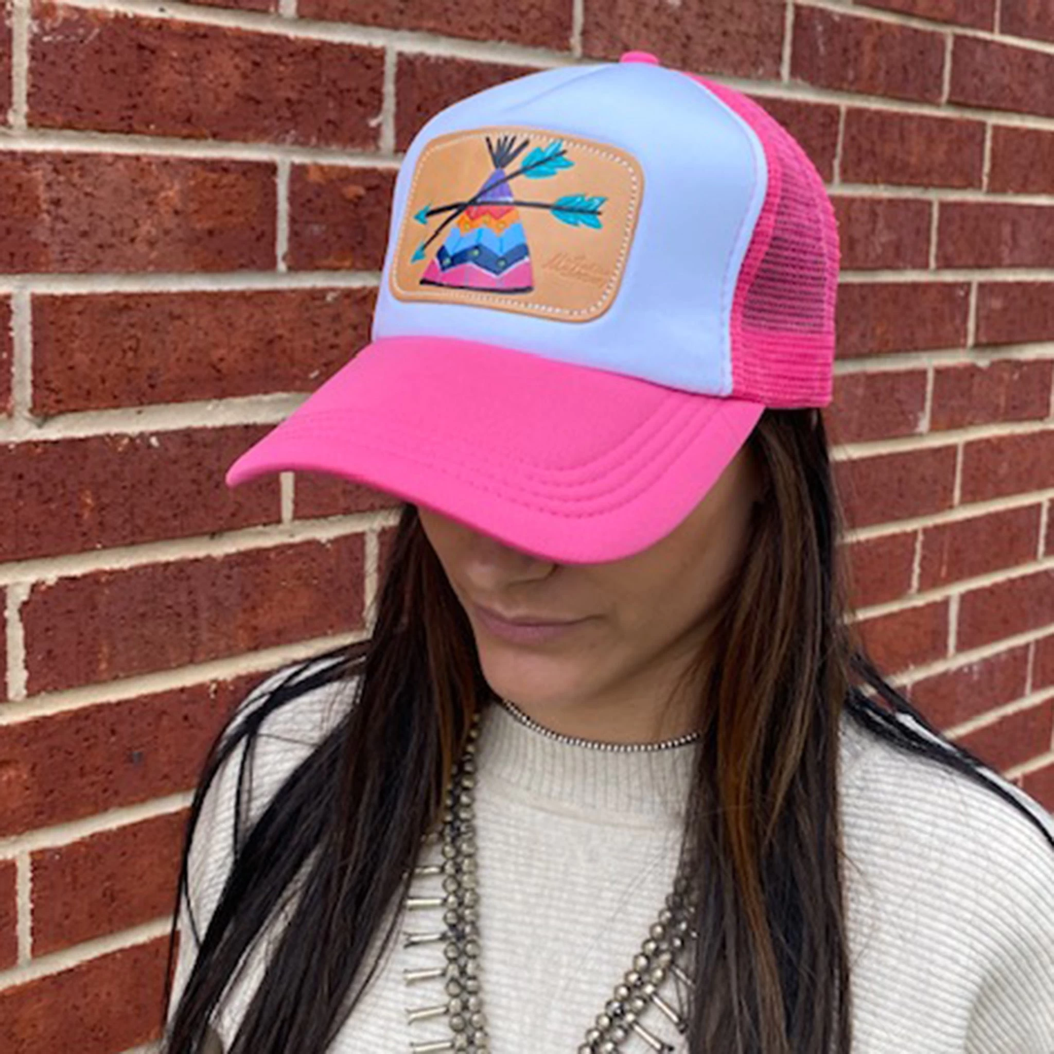 Brighten up your day with this fun Pink Teepee cap from McIntire Saddlery! It’s a Foam Cap (which we LOVE) featuring a hand painted Teepee Leather Patch!