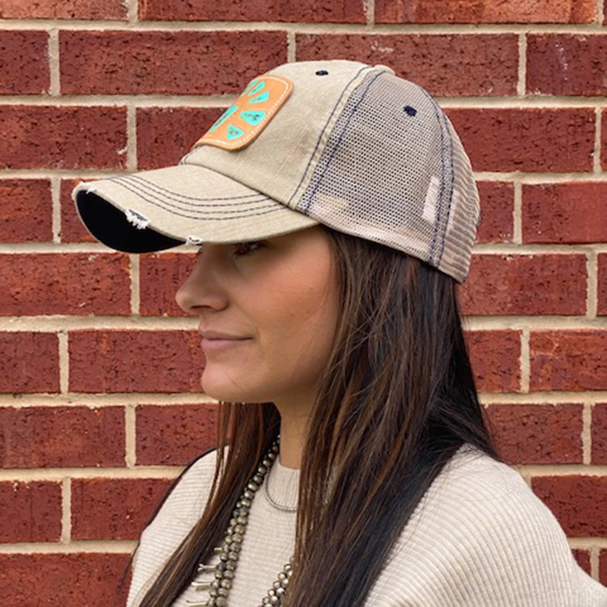This Khaki Cap featuring the painted turquoise squash is a Western Edge Favorite! So cute and fun, add a touch of western flare to any outfit with this cap!Â