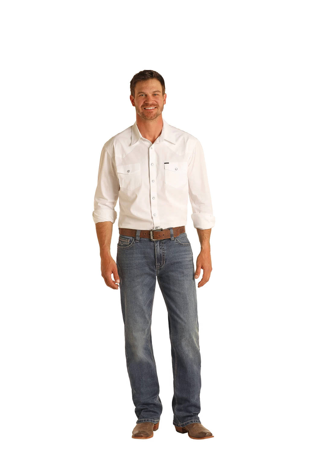 Men’s Rock & Roll Double Barrel Relaxed Fit comes in a straight leg. The double stitched back pockets have contrasting thread to add extra style and strength to these comfortable favorites! The Dark Vintage wash adds to the great style to these stackable jeans. The small amount of Spandex keeps them cool but still allows for a little stretch.