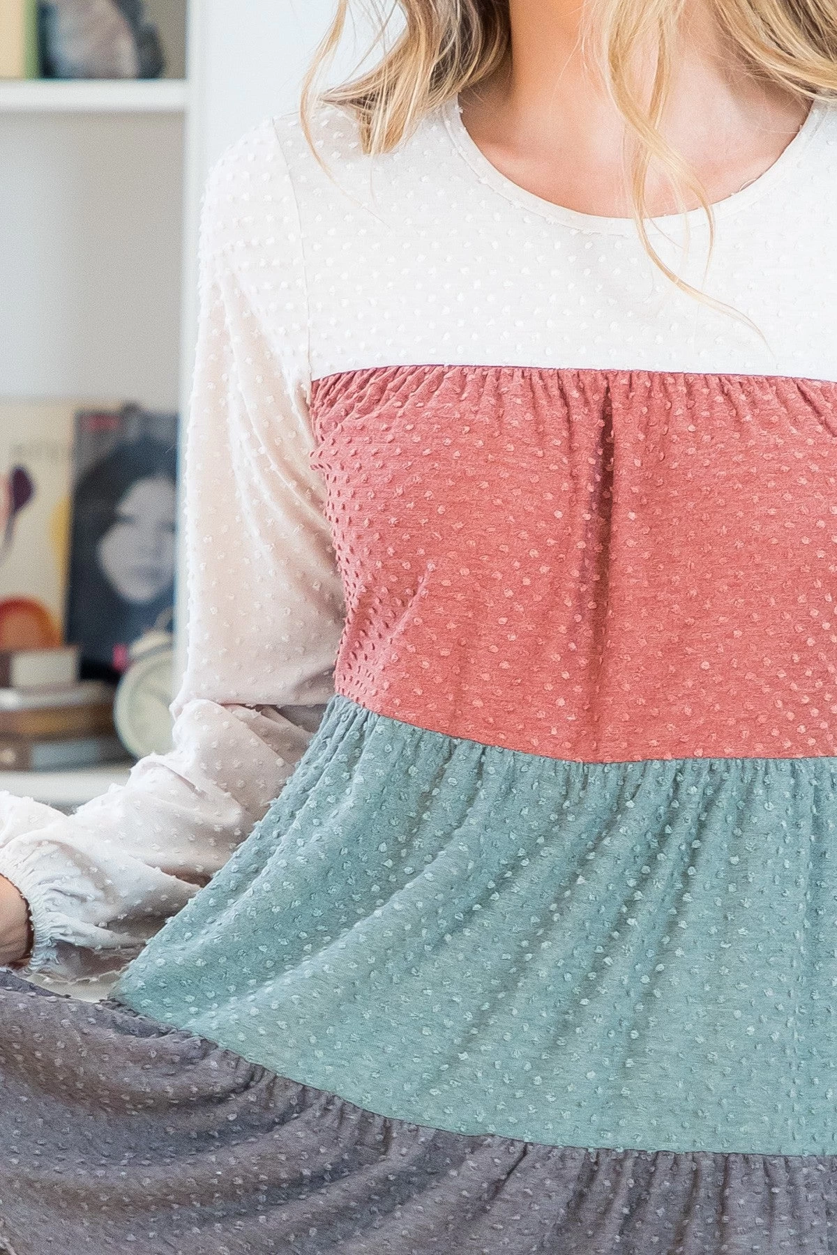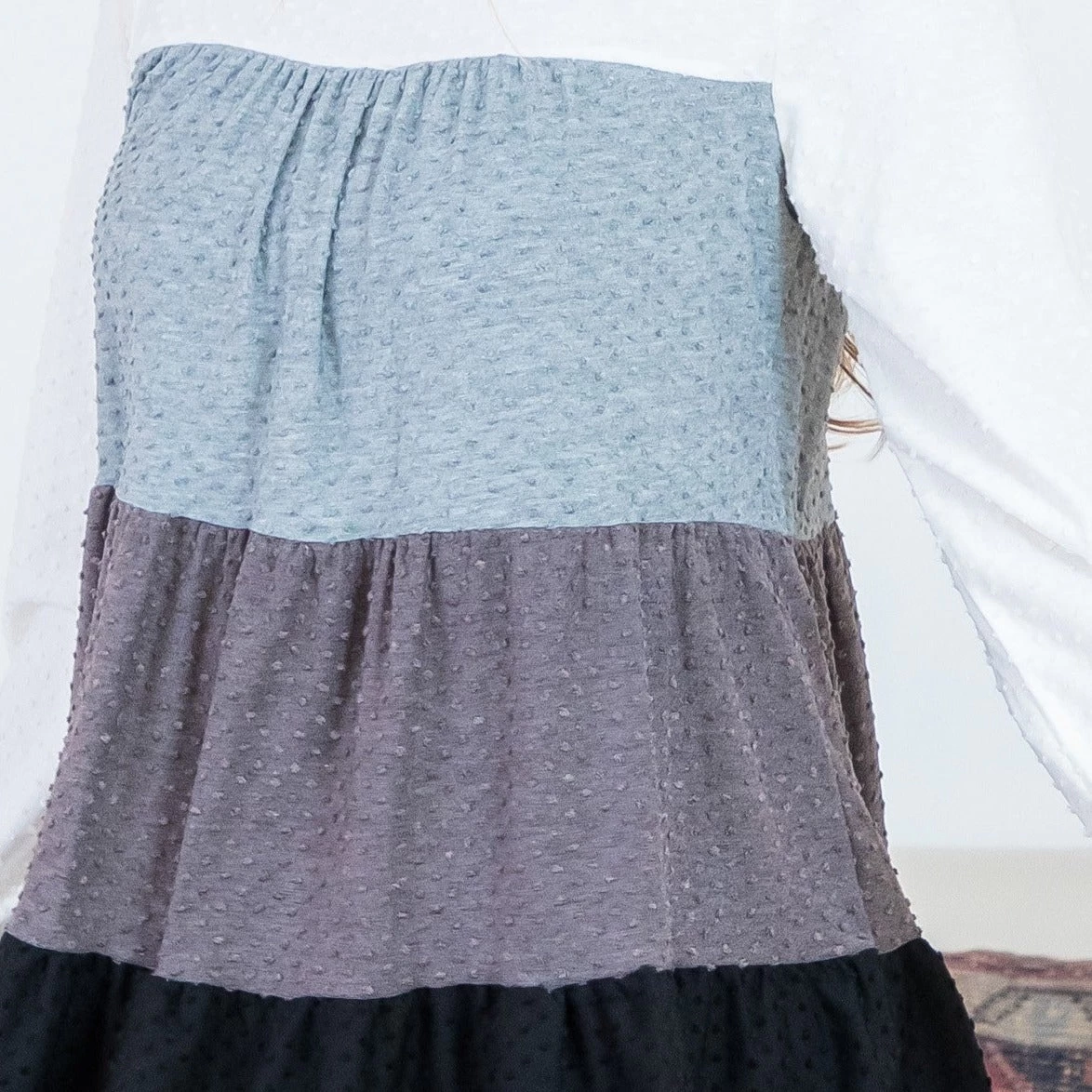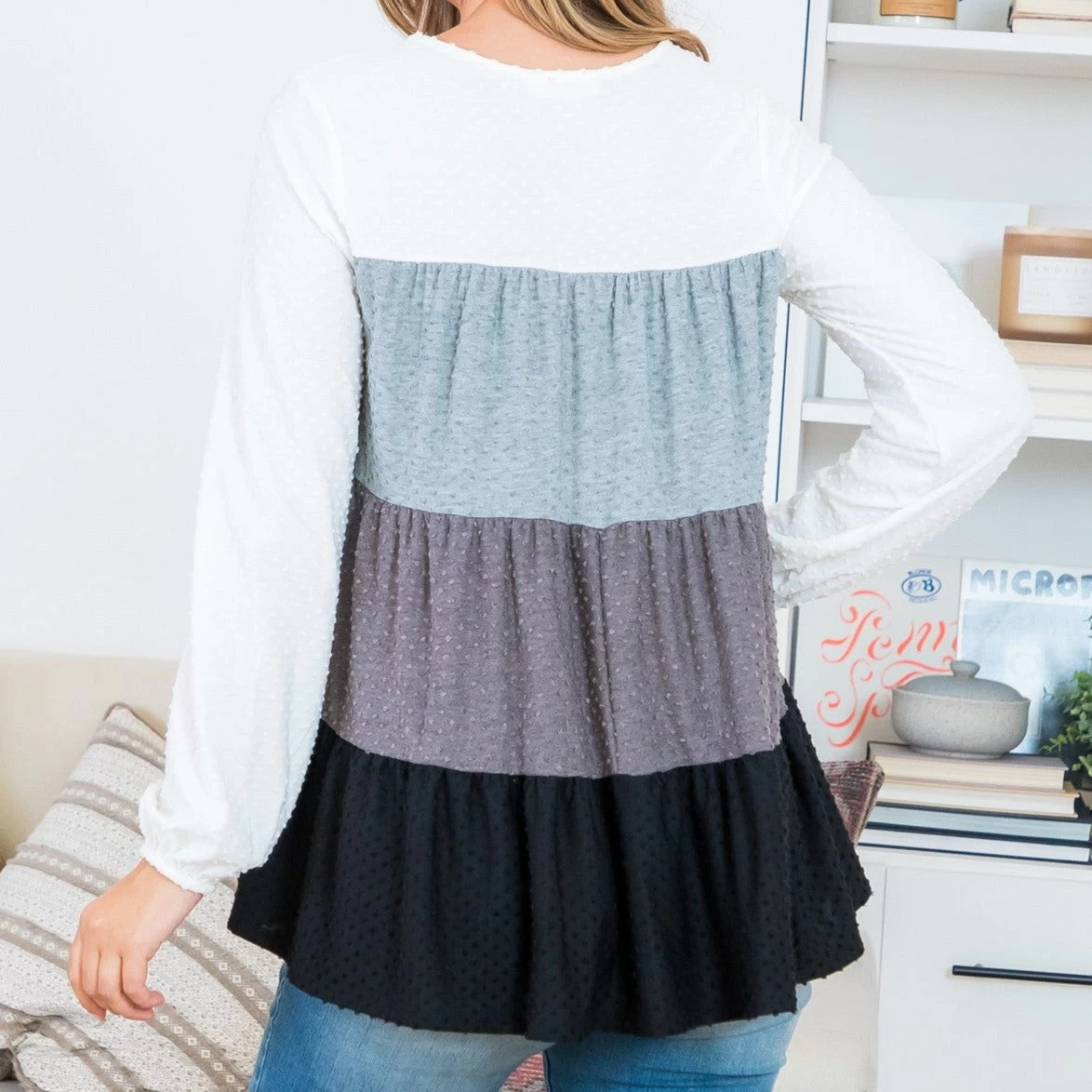 We love these color block baby dolls. The Swiss dots add texture to the top. You can pick from two different colors schemes or get one of each.Â