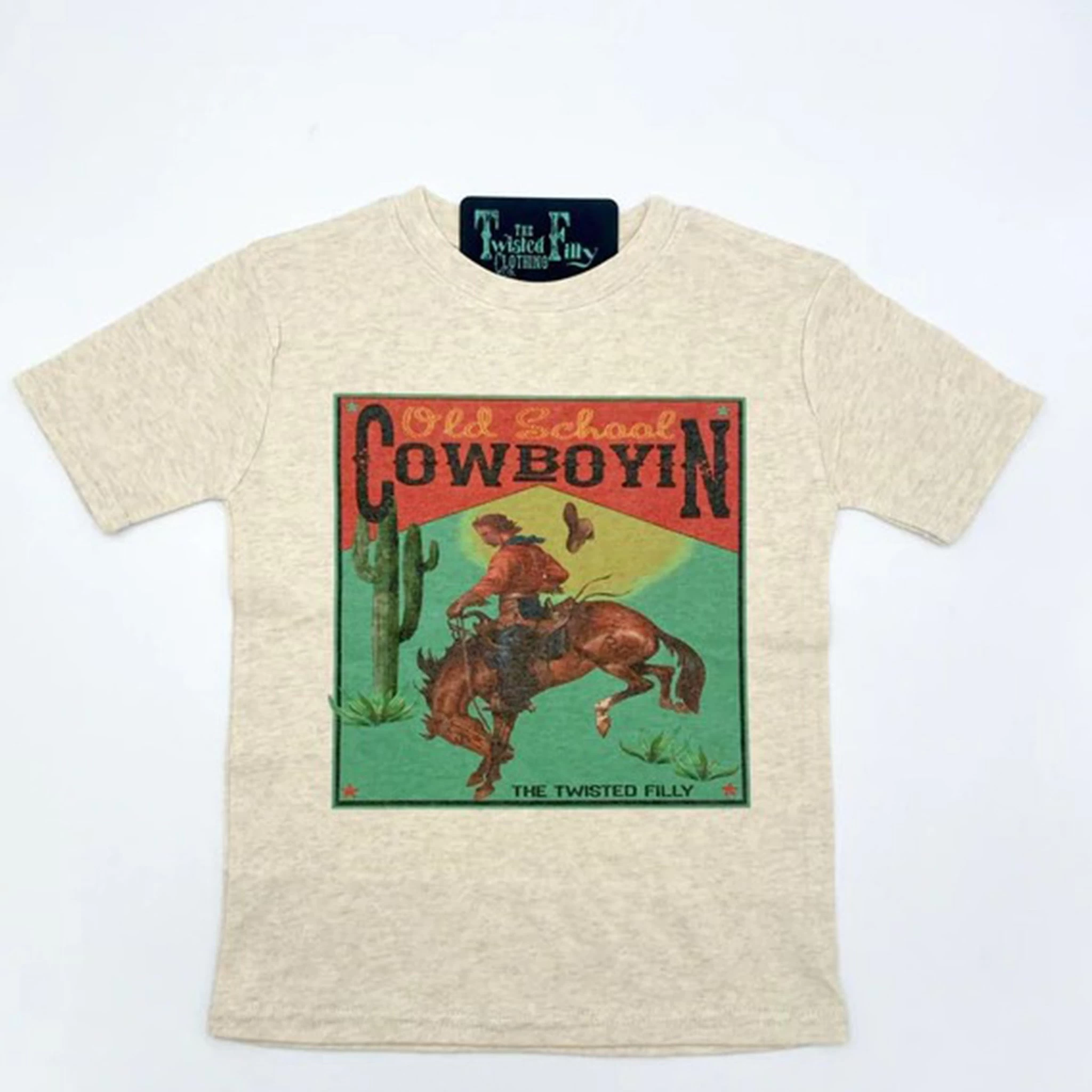 There’s a certain nostalgia for the old west that some of us have always held close to our hearts. The feeling of the wind blowing across your face as you ride your horse across the open prairie, or the dusty smell of the arena, riding broncs or branding calves. Introducing the Old School Cowboyin’ toddler tee.