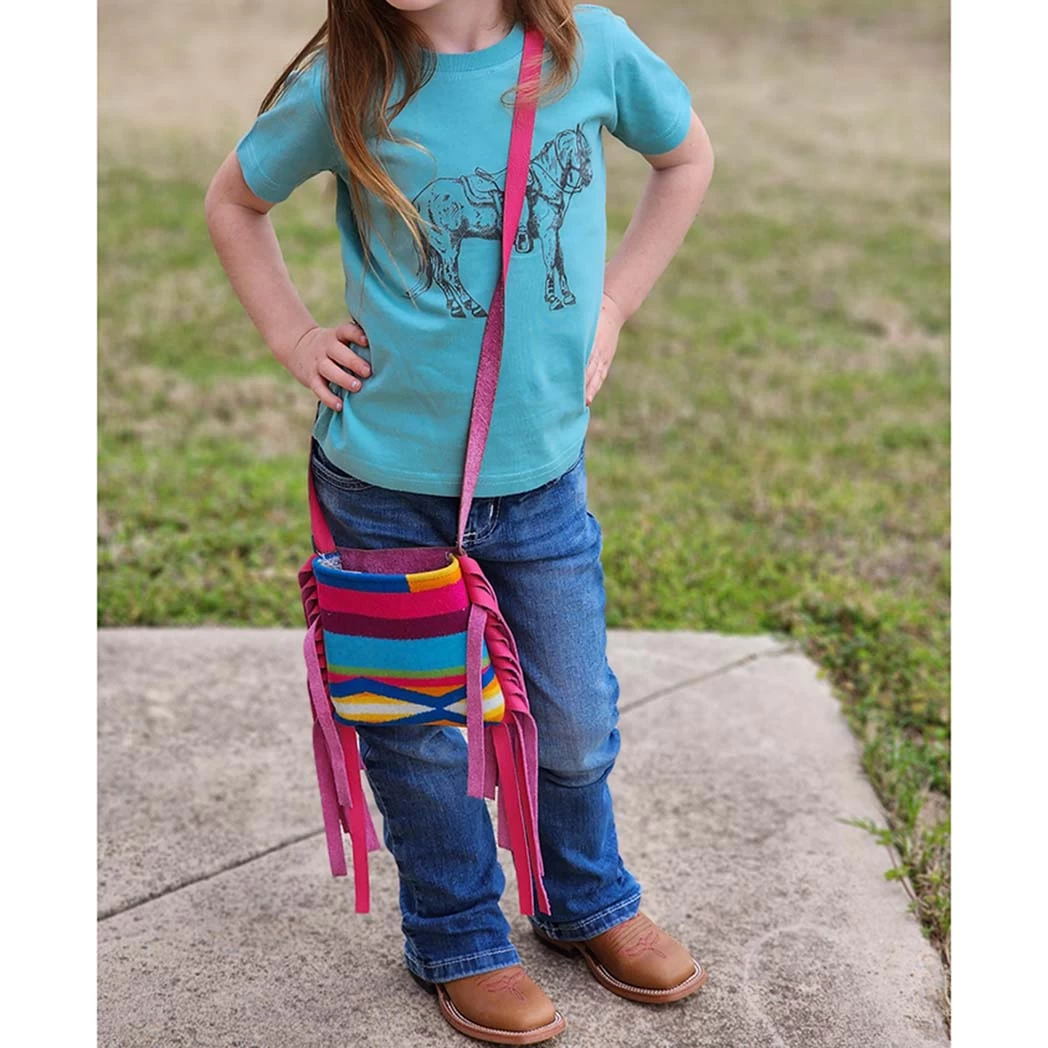 For your little Western Fashionista, this adorable handmade, mini purse with tan fringe is the perfect accessory!Â