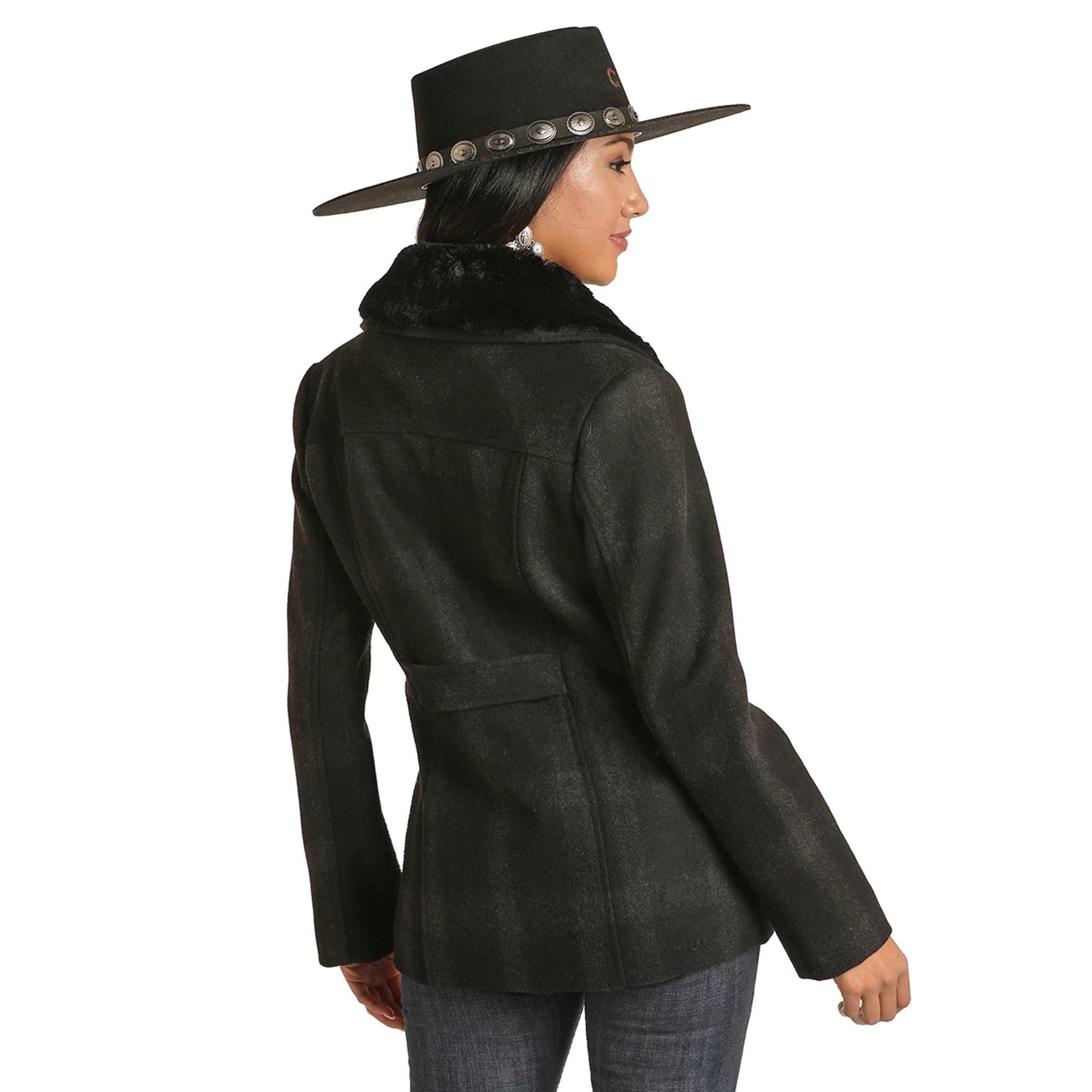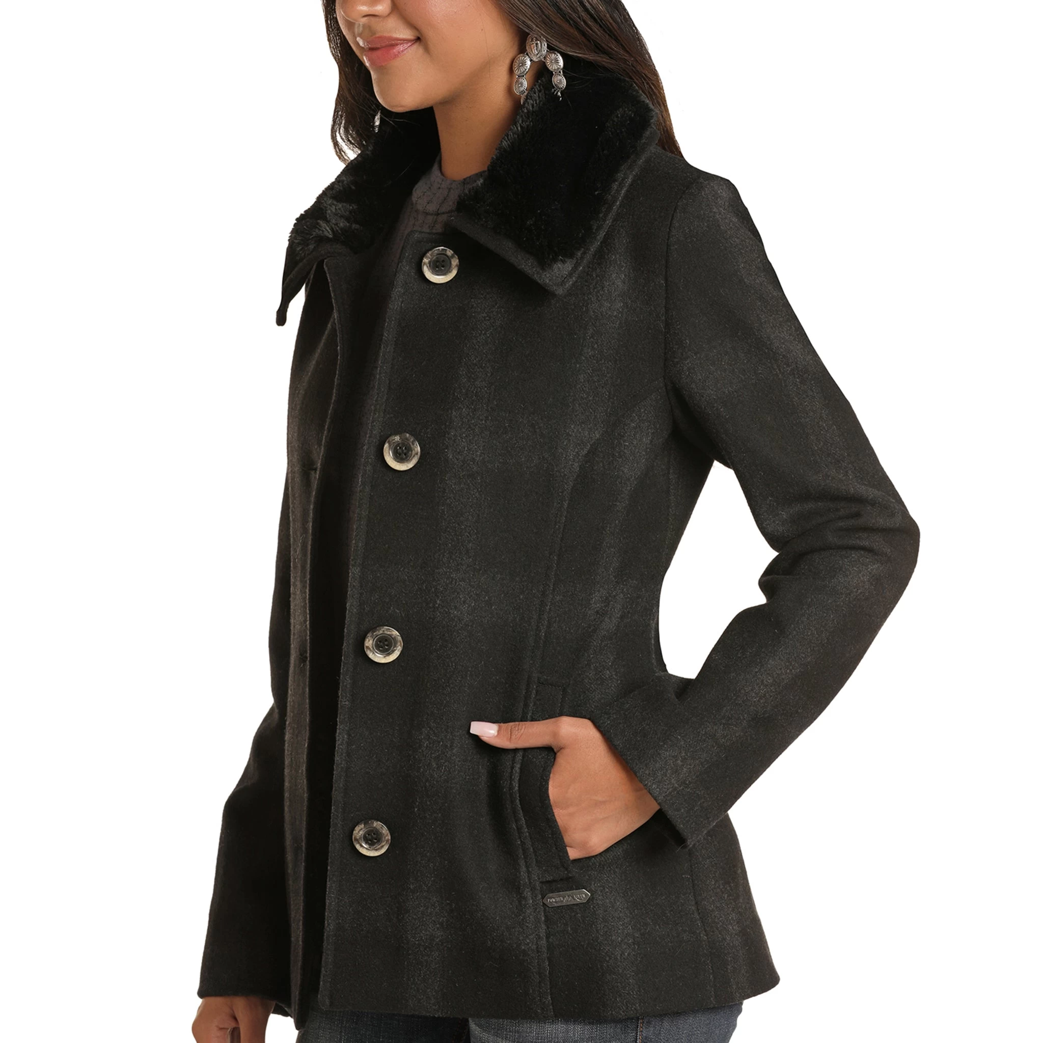 This charcoal Powder River Outfitters wool plaid jacket is so classic and the perfect accessory to make any outfit better! It features a black fur collar that really dresses up this jacket in the best way!