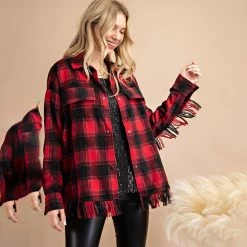 Fringe Detail Buffalo Plaid Shacket