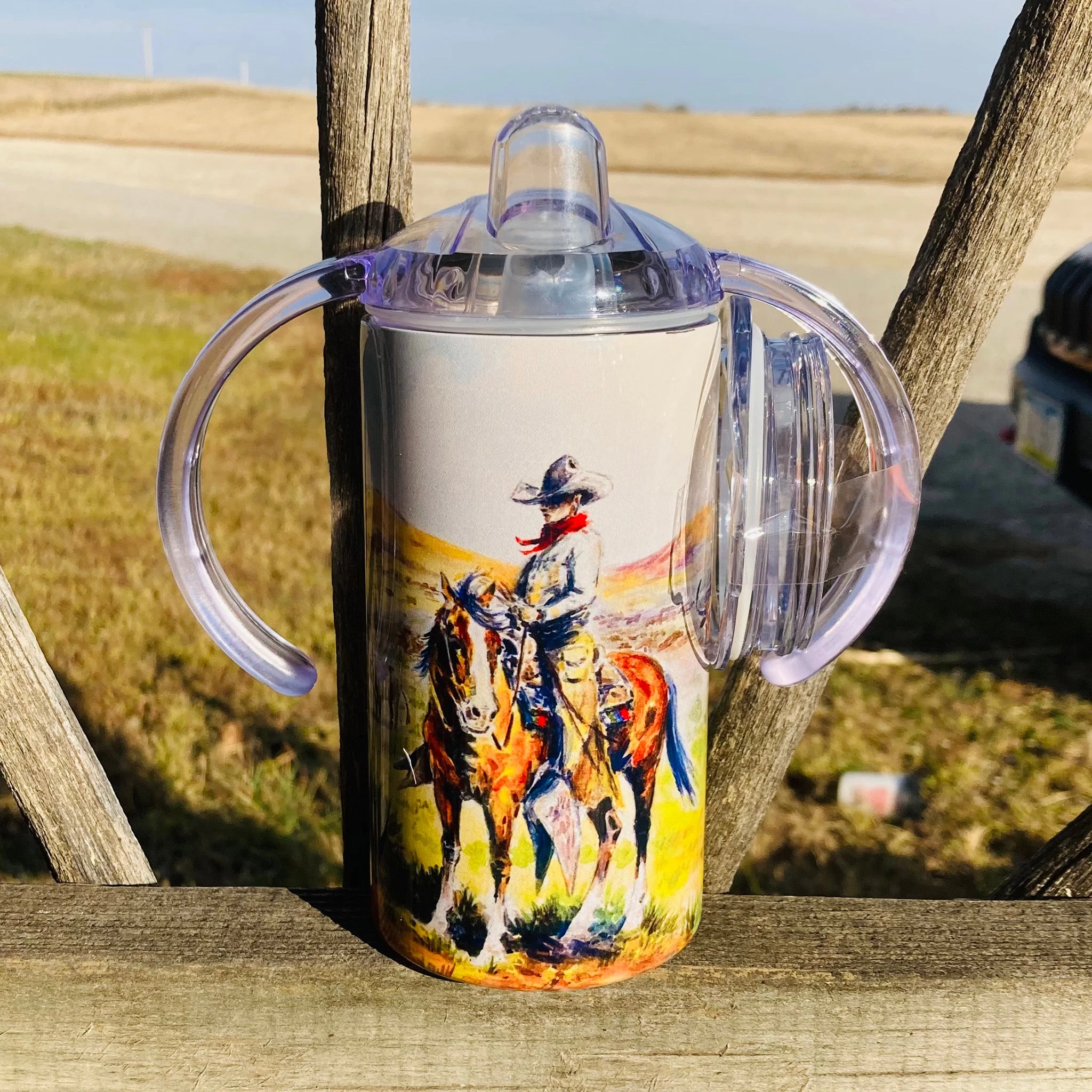 For the little ranch hand in your life this “ranchin out west” tumbler is perfect! You will love this leak proof, easy to wash sippy cup!