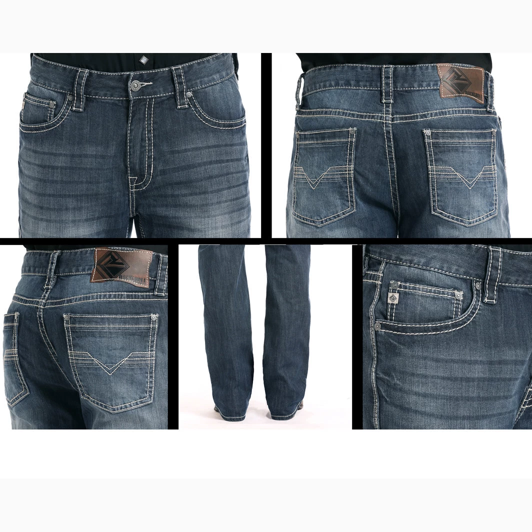 These men’s Rock & Roll jeans feature an ivory colored basic chevron stitching detail on the back pockets. They are a medium wash with a slight faded acid wash on the thighs. The relaxed fit adds extra comfort along with Reflex Technology to give just a slight stretch to the fabric. You’ll love the wash on these jeans!