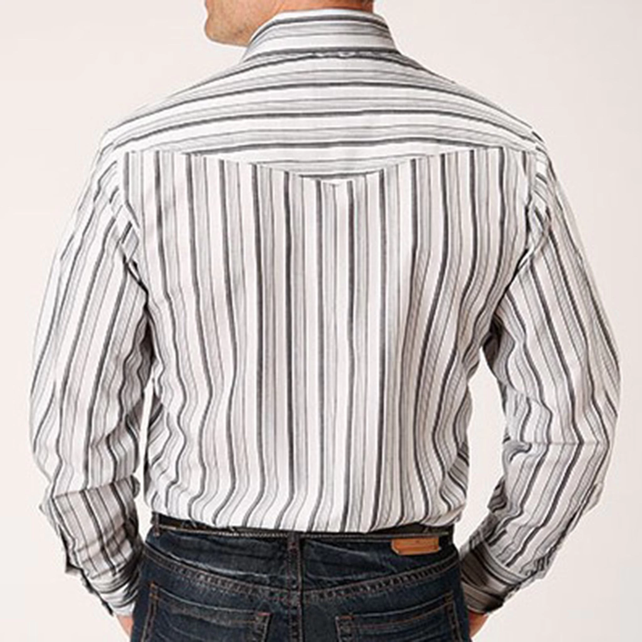 This grey/charcoal/white striped print is a classic pearl snap by Roper. Men you will turn some heads with this shirt!