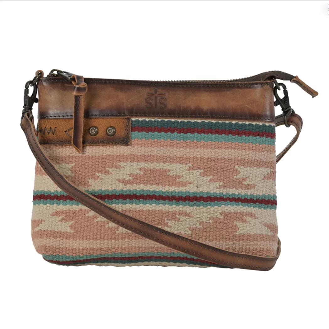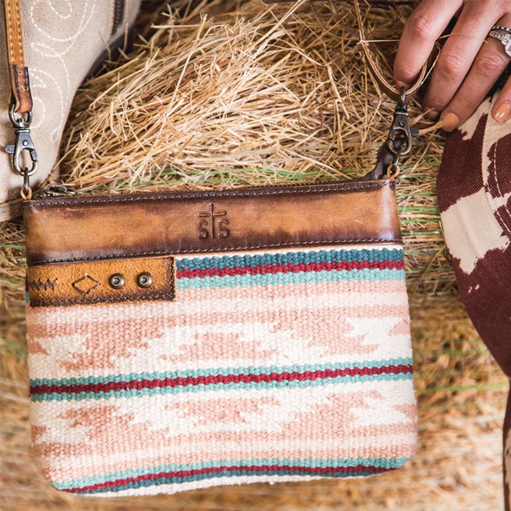 The Palomino Grace Crossbody by STS features Aztec woven serape with genuine leather accents. This bag is sure to add style to any outfit you pair it with.