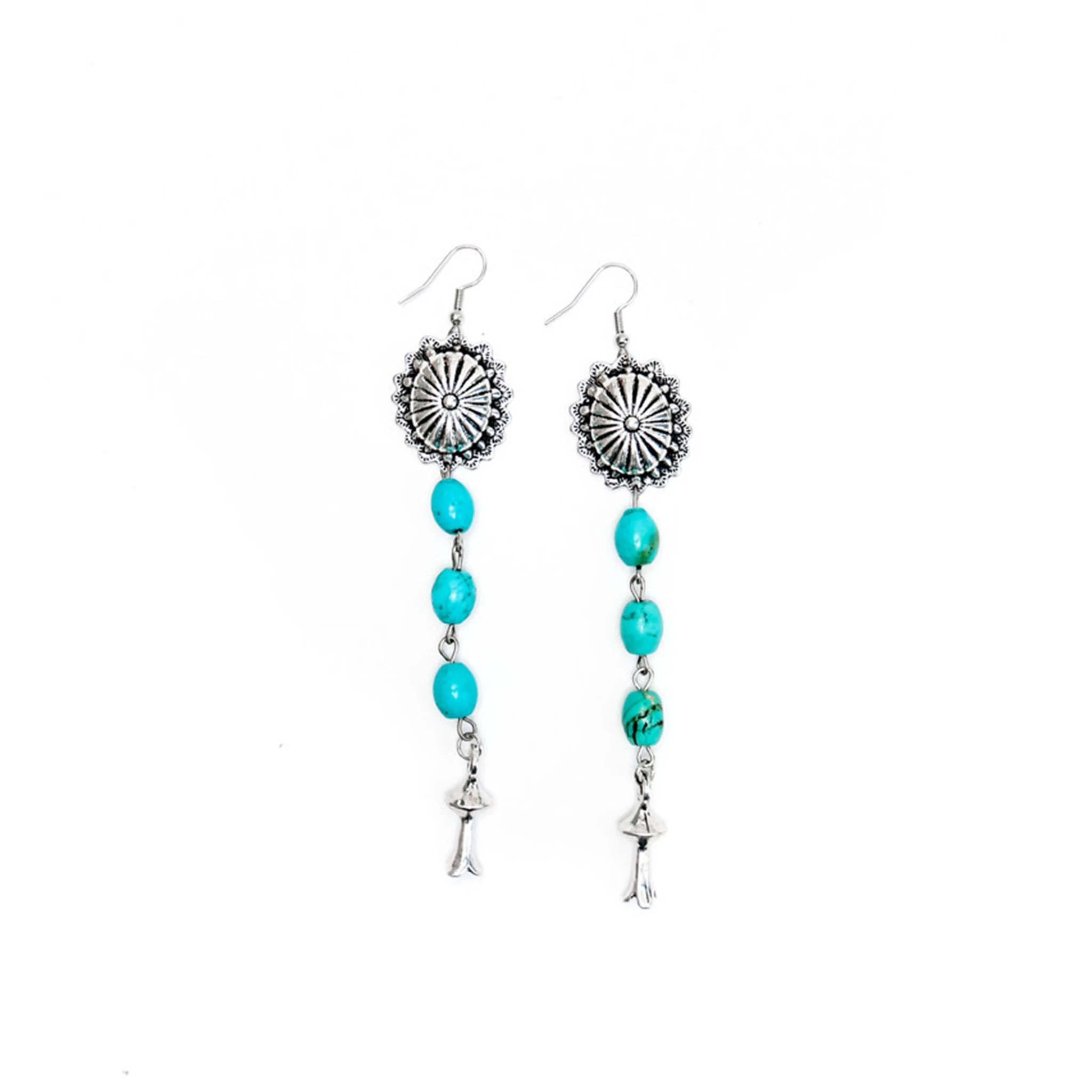 - Turquoise beaded earring with Silver concho and blossom on fishhookÂ