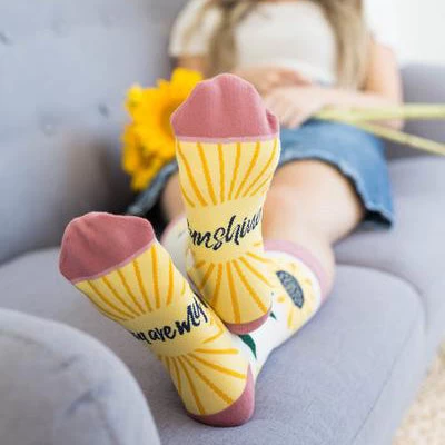 These adorable women’s socks read ‘You Are My Sunshine’ on the bottom! The leg of the socks feature cute sunflowers!Â