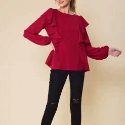 Ruffle Detailed Long Sleeve Top