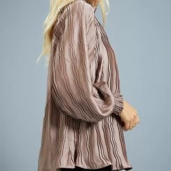 Solid Ruffled Satin Long Sleeve