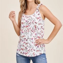 STACCATO Ivory Floral Ruffled Tank Top