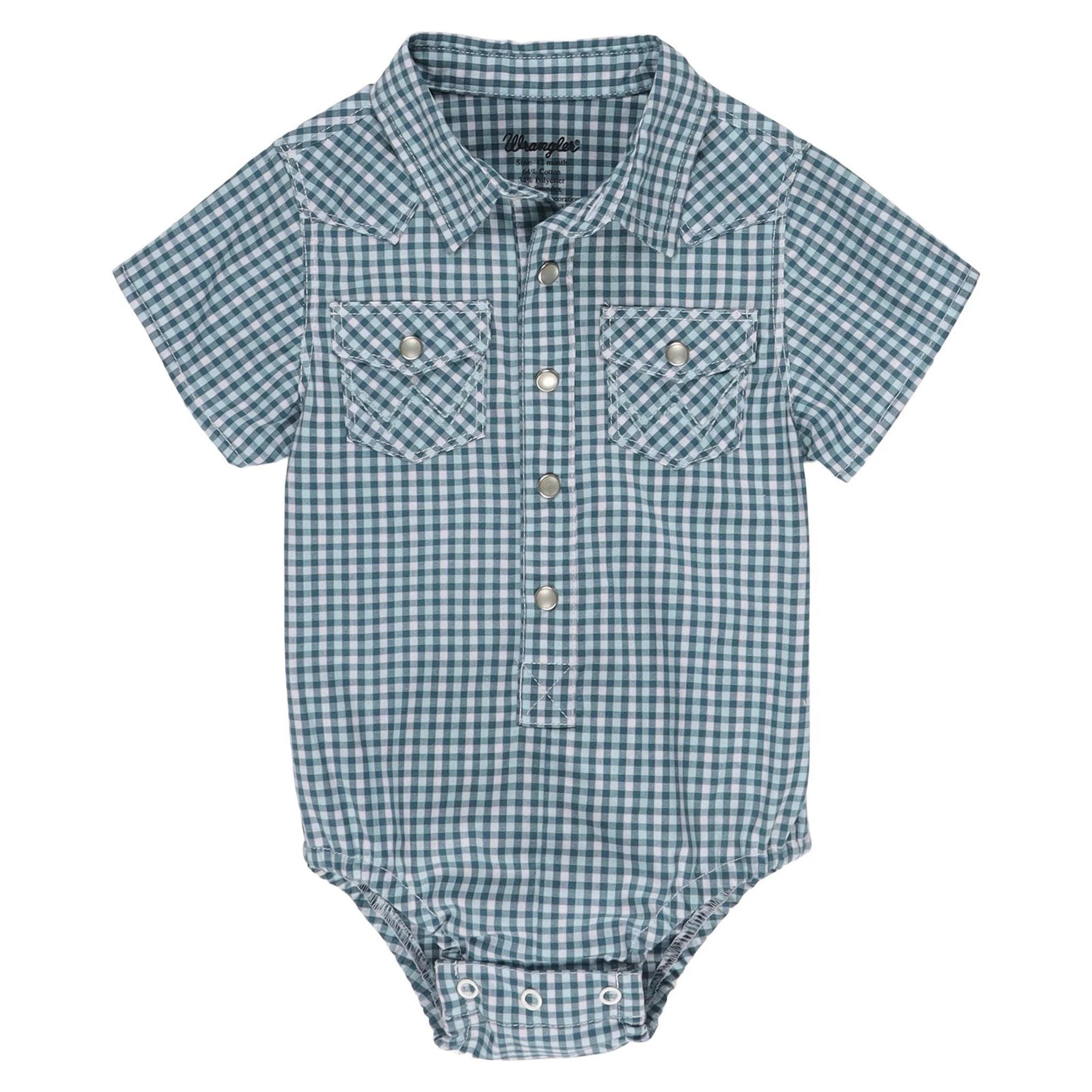 This onesie is perfect to wear alone when it’s hot out, or match with a pair of jeans. It features one point front and back yokes, two snap pockets, elastic leg openings and a three snap closure for easy diaper changing.