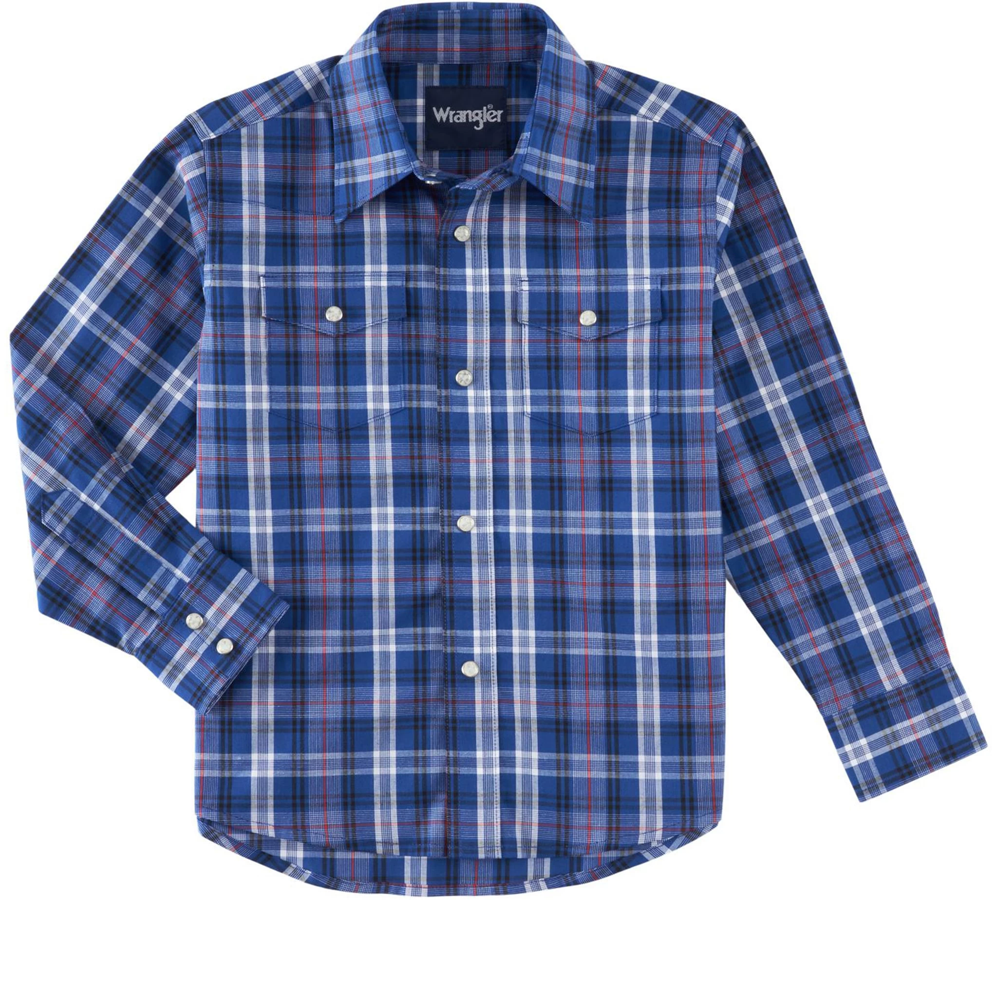 Your cowboy will look his best in this blue plaid pearl snap western shirt.Â