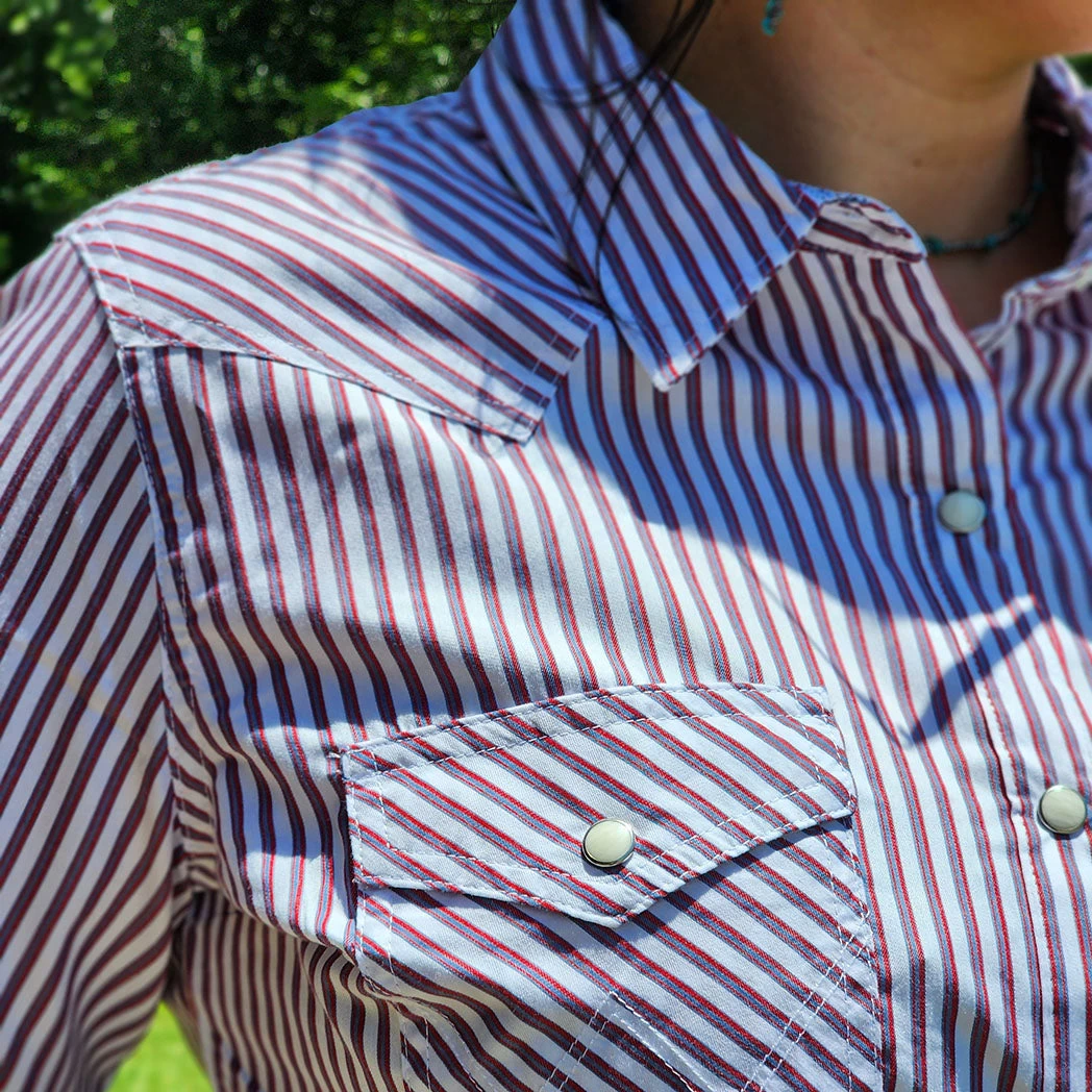 This is the perfect summer shirt for rodeos, cool and comfortable. This great striped shirt has a more fitted style that give such a flattering shape.Â